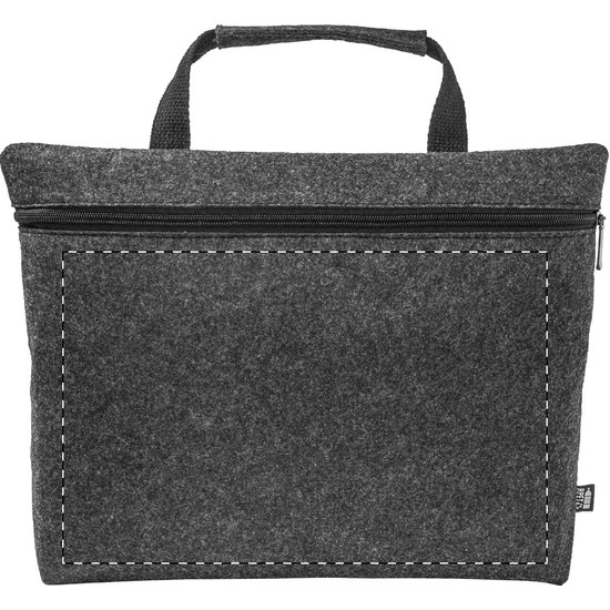 RPET filcből készült irat- és laptoptáska cipzáras fő rekesszel és cipzáras belső zsebbel. Legfeljebb 15"-os laptopokhoz alkalmas. Megkülönböztető RPET címkével.
