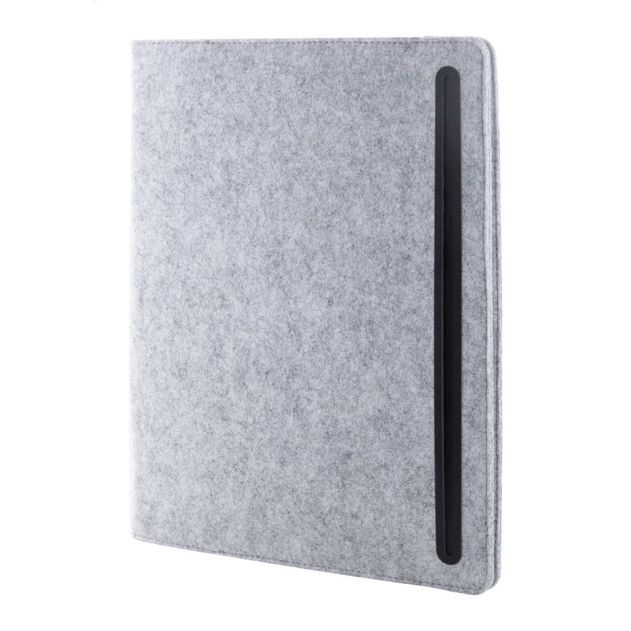 A4-es méretű, RPET filc iratmappa elülső és több belső rendezőzsebbel. 20 vonalas jegyzettömbbel újrahasznosított papírból.