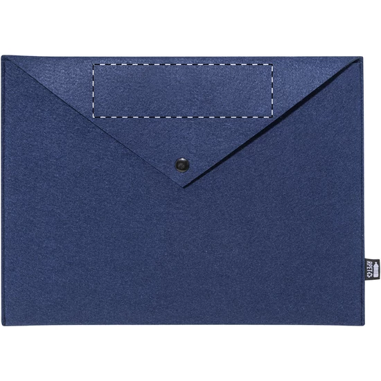 RPET filcből készült irattáska vagy laptoptáska gombos záródással. Legfeljebb 13"-os laptopokhoz alkalmas. Megkülönböztető RPET címkével.