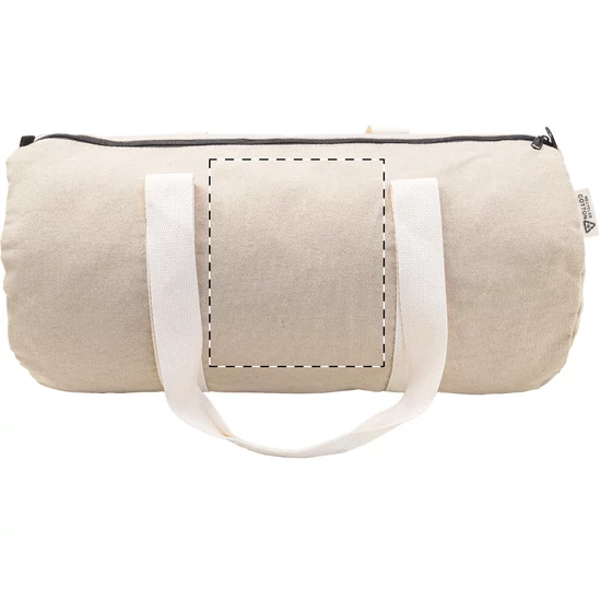 | Újrahasznosított vászon sporttáska cipzáras fő rekesszel, cipzáras belső zsebbel és hosszú fogantyúkkal. 70% újrahasznosított pamut és 30% újrahasznosított poliészter. Megkülönböztető újrahasznosított pamut címkével. | |