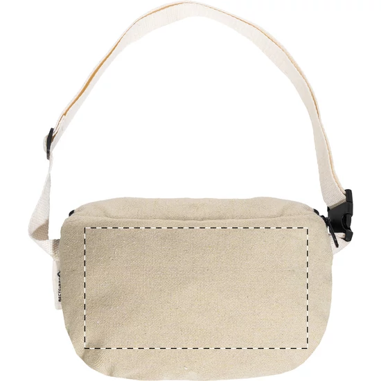 | Újrahasznosított vászon övtáska cipzáras rekesszel és állítható pánttal. 70% újrahasznosított pamut és 30% újrahasznosított poliészter. Megkülönböztető RPET címkével. | |