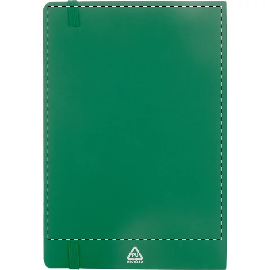 | Újrahasznosított PU bőr, puha fedelű jegyzetfüzet 80 vonalas lappal, újrahasznosított papírból. Hozzáillő színű könyvjelzővel és gumiszalaggal. A5 méretű. | |