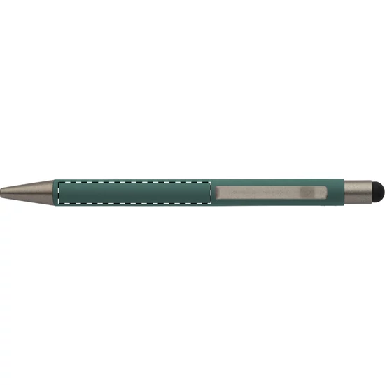 Újrahasznosított alumínium és érintőképernyős golyóstoll gumírozott testtel és fegyverfém részekkel. Kék tollbetéttel.