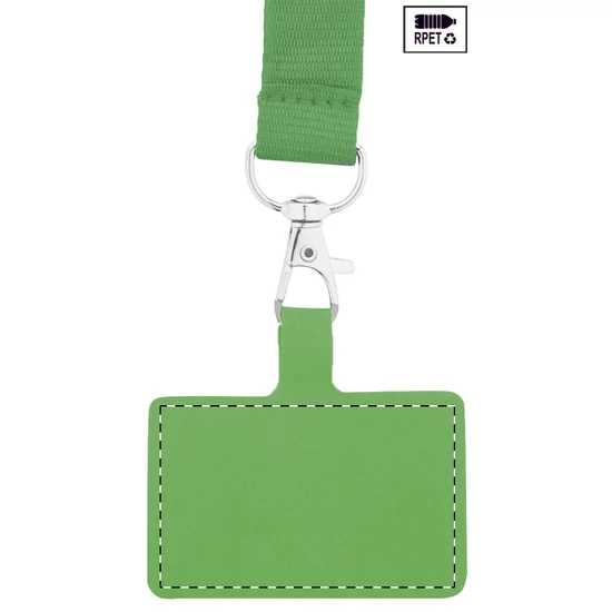 | RPET mobiltartó nyakpánt fém karabinerrel, biztonsági csattal és hozzáillő színű telefonbetéttel. | |