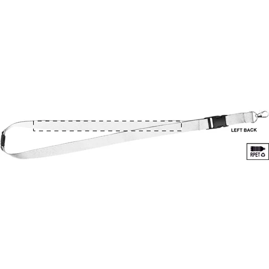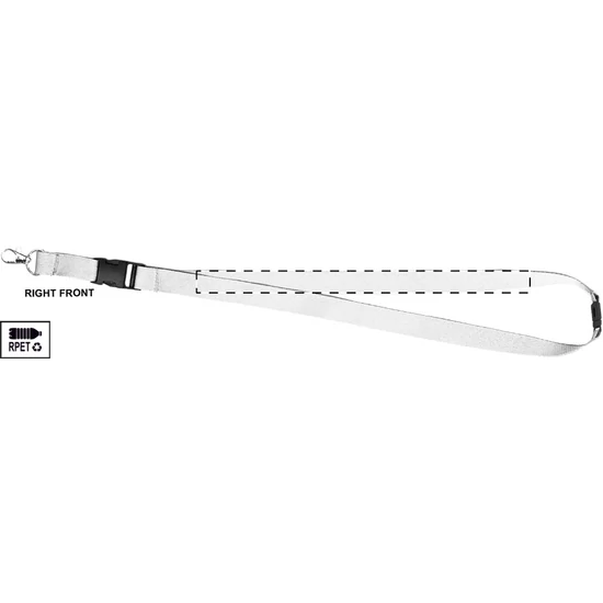 | RPET poliészter nyakpánt levehető fém karabinerrel és biztonsági csattal. | |