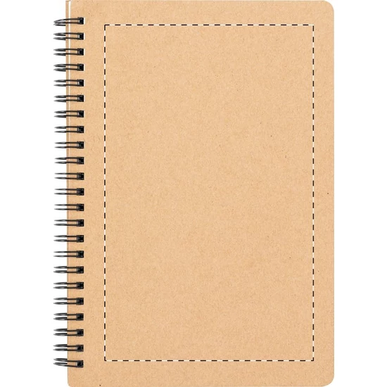 | Újrahasznosított papír borítású, kőpapír spirál jegyzetfüzet 70 vonalas lappal, A5 méretű. | |