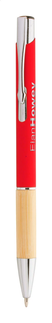 Alumínium golyóstoll bambusz markolattal, gumírozott felülettel és kék tollbetéttel. Speciális bevonattal rendelkezik, amely különlegesen fényessé teszi a gravírozott emblémát.