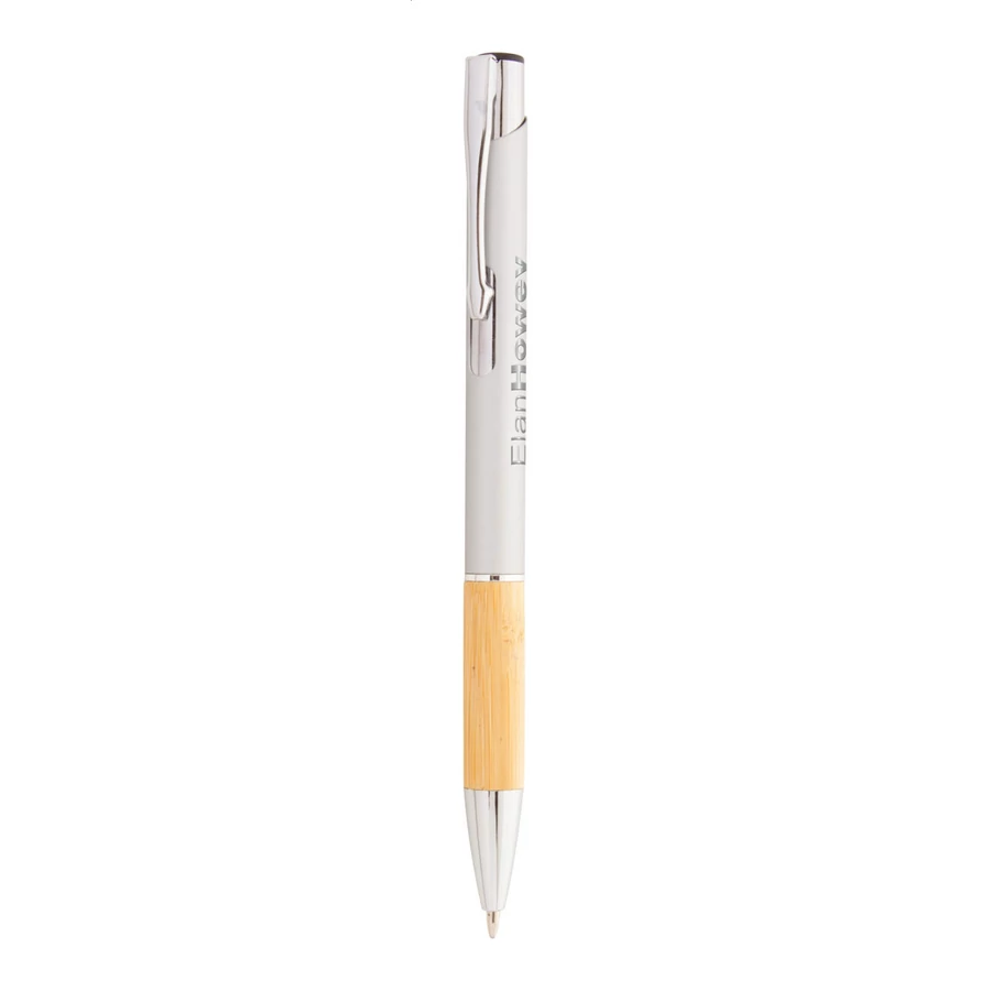 Alumínium golyóstoll bambusz markolattal, gumírozott felülettel és kék tollbetéttel. Speciális bevonattal rendelkezik, amely különlegesen fényessé teszi a gravírozott emblémát.