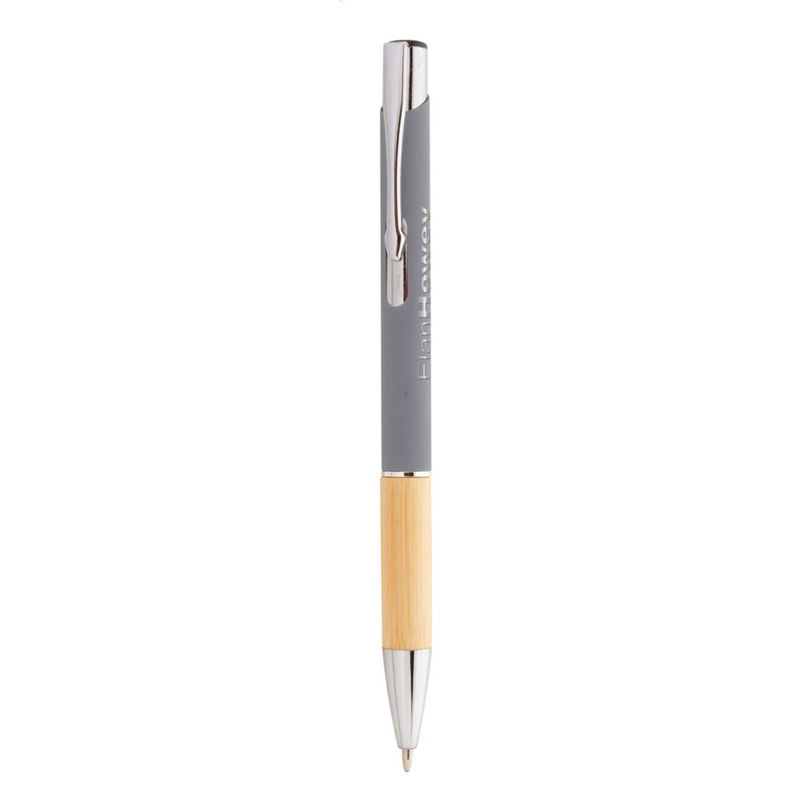 Alumínium golyóstoll bambusz markolattal, gumírozott felülettel és kék tollbetéttel. Speciális bevonattal rendelkezik, amely különlegesen fényessé teszi a gravírozott emblémát.