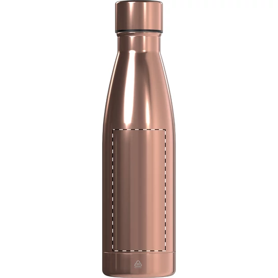 Duplafalú, újrahasznosított rozsdamentes acélból készült, rézszigetelésű termosz metálfényű bevonattal, 500 ml. A rézszigetelés 12 órán át melegen, 24 órán át hidegen tartja az italokat.
