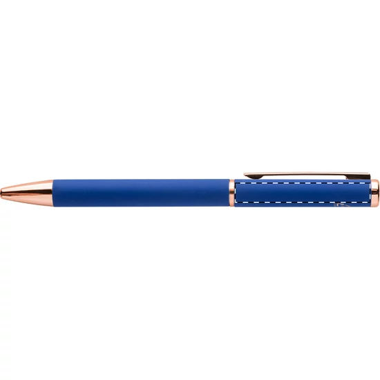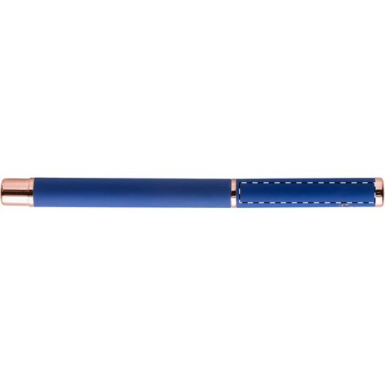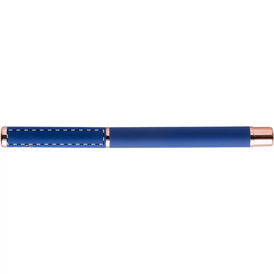 | Újrahasznosított alumínium tollszett golyóstollal és rollertollal, gumírozott felülettel és rózsaarany részletekkel. Kék tollbetéttel. Speciális bevonattal a tükörlézeres gravírozáshoz rózsaarany színben. Fekete papír ajándékdobozban. | |