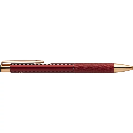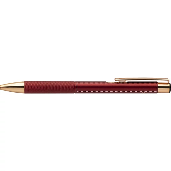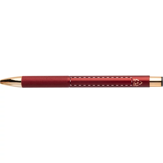 | Újrahasznosított alumínium golyóstoll matt felületű testtel, texturált markolattal és rózsaarany részletekkel. Speciális bevonattal a tükörlézeres gravírozáshoz rózsaarany színben. Kék tollbetéttel. | |