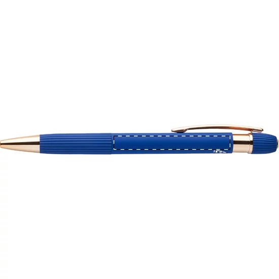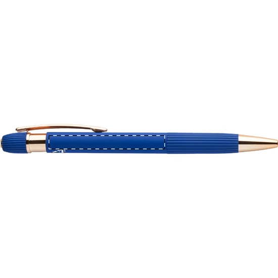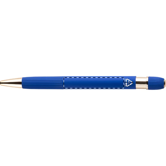 | Újrahasznosított alumínium golyóstoll gumírozott testtel és rózsaarany részletekkel. Speciális bevonattal a tükörlézeres gravírozáshoz rózsaarany színben. Kék tollbetéttel. | |