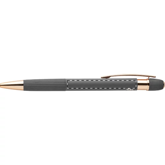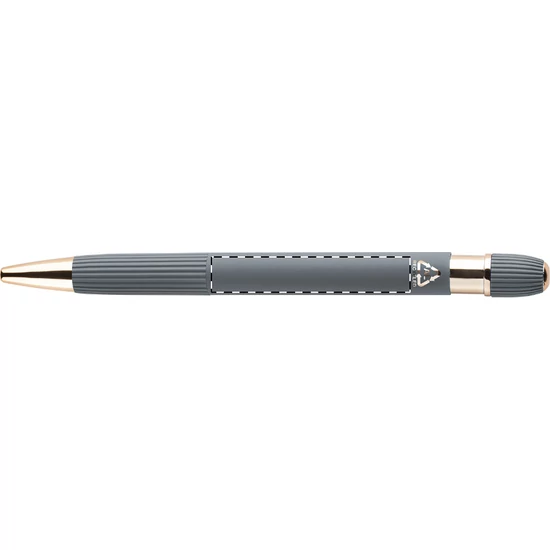 | Újrahasznosított alumínium golyóstoll gumírozott testtel és rózsaarany részletekkel. Speciális bevonattal a tükörlézeres gravírozáshoz rózsaarany színben. Kék tollbetéttel. | |
