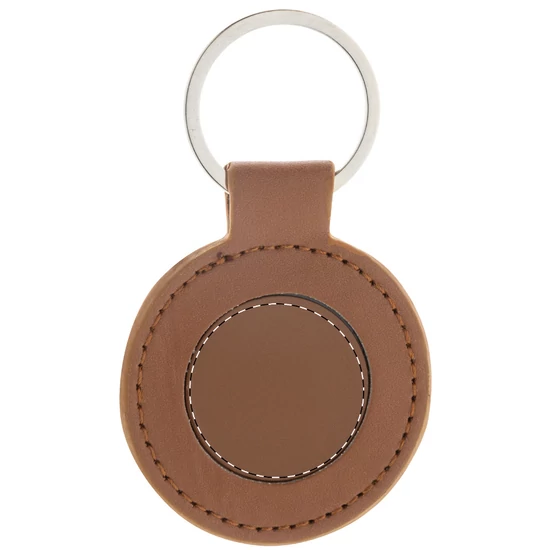 | Kör alakú, újrahasznosított PU bőr kulcstartó fém karikával és gumírozott rozsdamentes acél logóval. Speciális bevonattal a tükörlézeres gravírozáshoz. | |