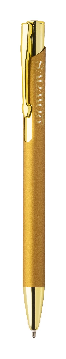 | Újrahasznosított alumínium golyóstoll gumírozott testtel és színes, fényes, metálfényű részekkel. Speciális bevonattal a fém alkatrészekhez illő tükörgravírozáshoz. Kék tollbetéttel. | |