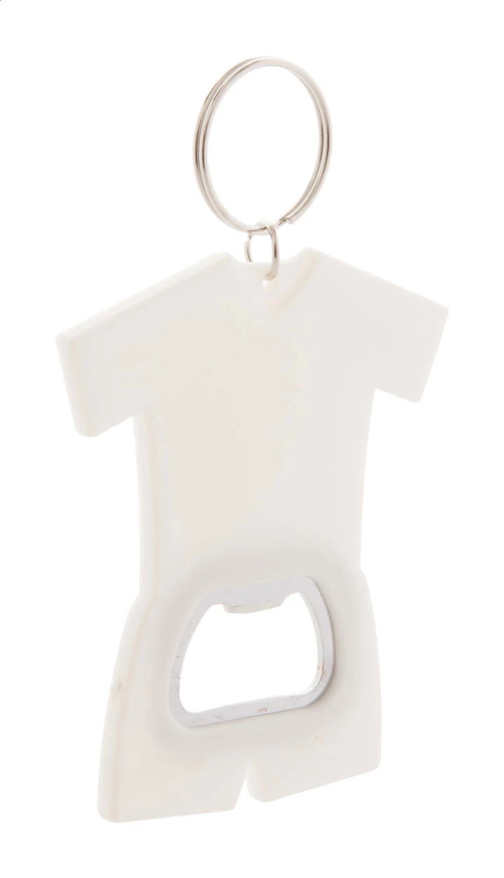 Sportruha formájú újrahasznosított ABS műanyag sörnyitó fém kulcstartóval.