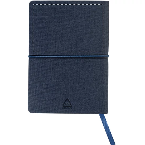 Újrahasznosított PU műbőrrel borított jegyzetfüzet 70 vonalas lappal, 25 öntapadós jegyzetlappal és 125 oldaljelölővel (5 különböző színben). Könyvjelzővel és vízszintes gumipánttal. A6-os méret.