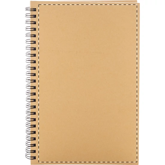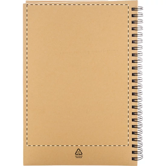 Újrahasznosított papír borítású spirál jegyzetfüzet 80 vonalas lappal, A5 méretű.