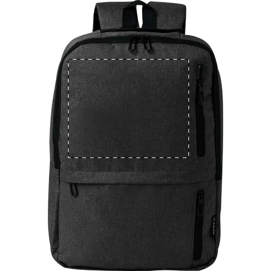 RPET hátizsák cipzáras rekeszekkel, párnázott laptop (15") és tablet (10") rekesszel, párnázott hát- és vállpántokkal. 600D RPET poliészter, megkülönböztető RPET címkével.
