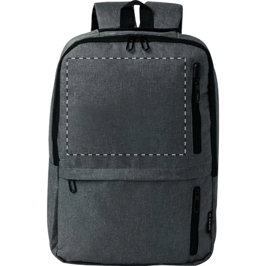 | RPET hátizsák cipzáras rekeszekkel, párnázott laptop (15") és tablet (10") rekesszel, párnázott hát- és vállpántokkal. 600D RPET poliészter, megkülönböztető RPET címkével. | |