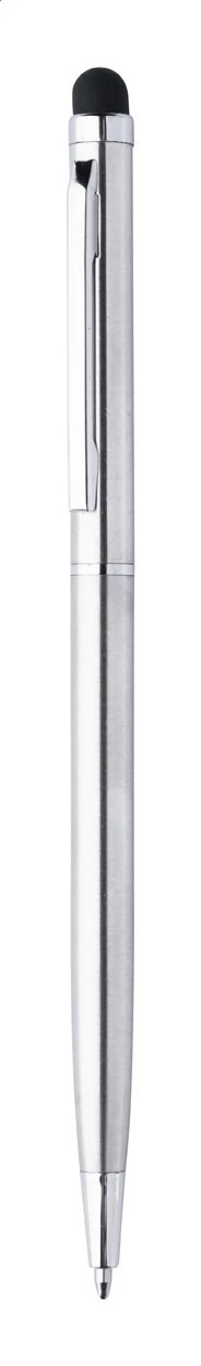 | Újrahasznosított rozsdamentes acélból készült tekerős és érintőképernyős golyóstoll króm részekkel. Kék tollbetéttel. | |