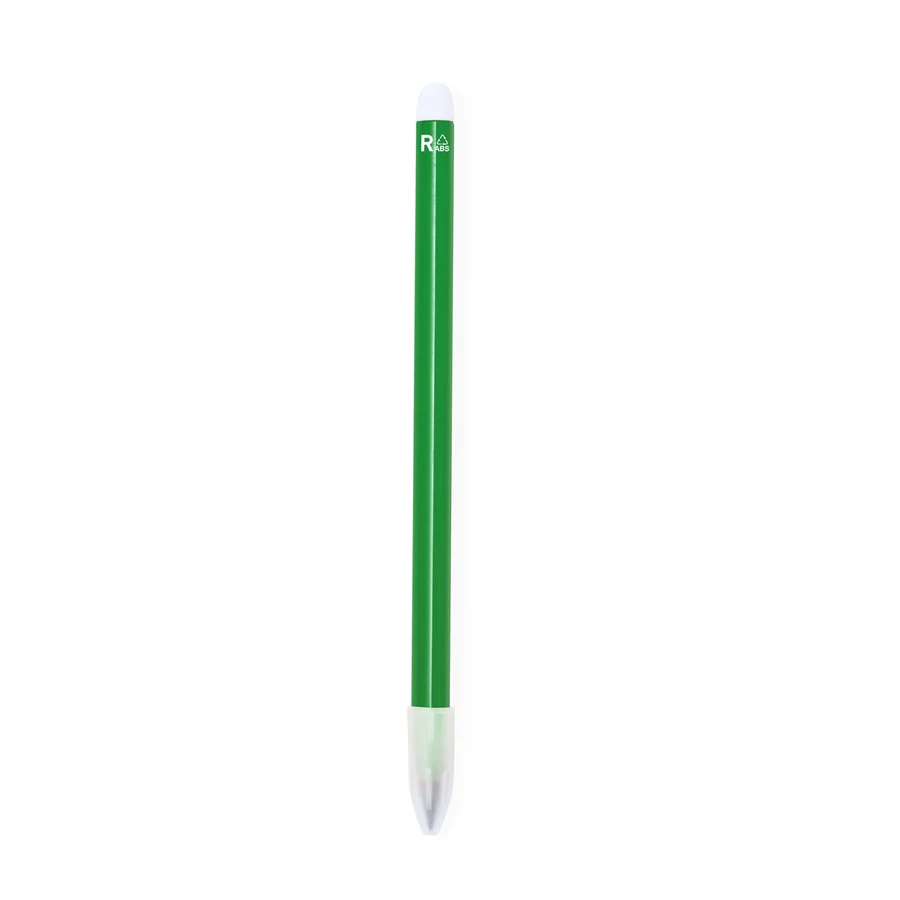 Hosszú élettartamú, újrahasznosított ABS műanyagból készült tintamentes toll fémötvözet heggyel, amely oxidálja a papírt. Ez a toll a ceruzához hasonlóan ír, és radírozható is.