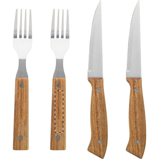 | 4 db-os rozsdamentes acél steak evőeszközszett akácfa nyéllel (2 steak kés, 2 villa). Kraft papírból készült, könyv alakú dobozban. | |