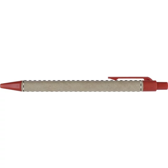 Újrahasznosított papírból készült golyóstoll, színes műanyag tollvéggel és klipsszel. Kék tollbetéttel szállítjuk.