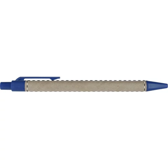 Újrahasznosított papírból készült golyóstoll, színes műanyag tollvéggel és klipsszel. Kék tollbetéttel szállítjuk.