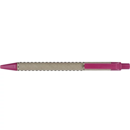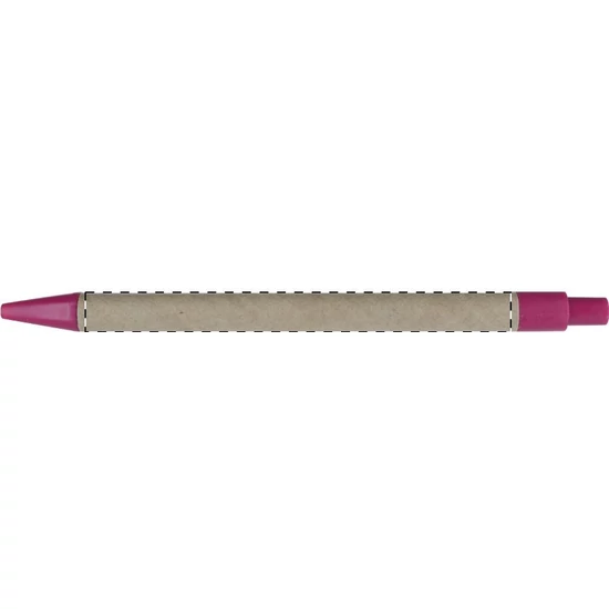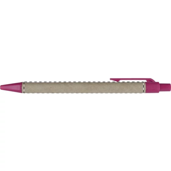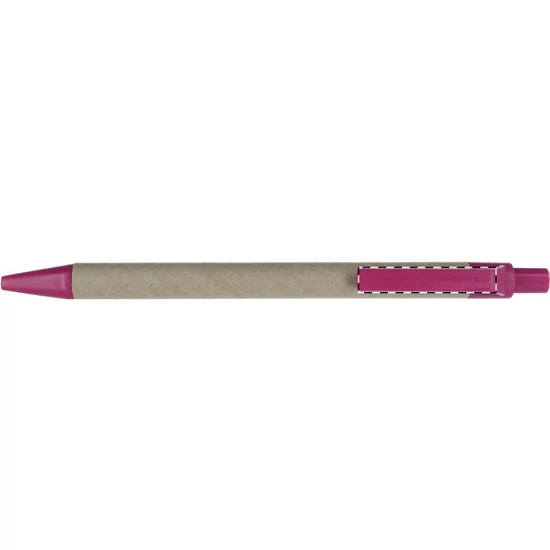 Újrahasznosított papírból készült golyóstoll, színes műanyag tollvéggel és klipsszel. Kék tollbetéttel szállítjuk.
