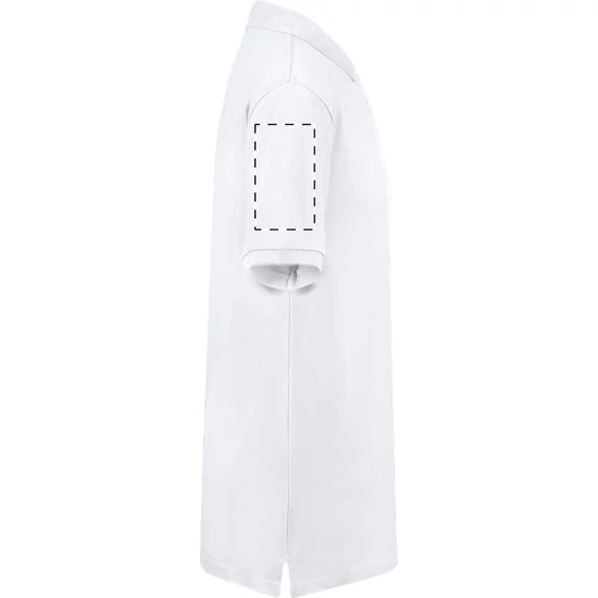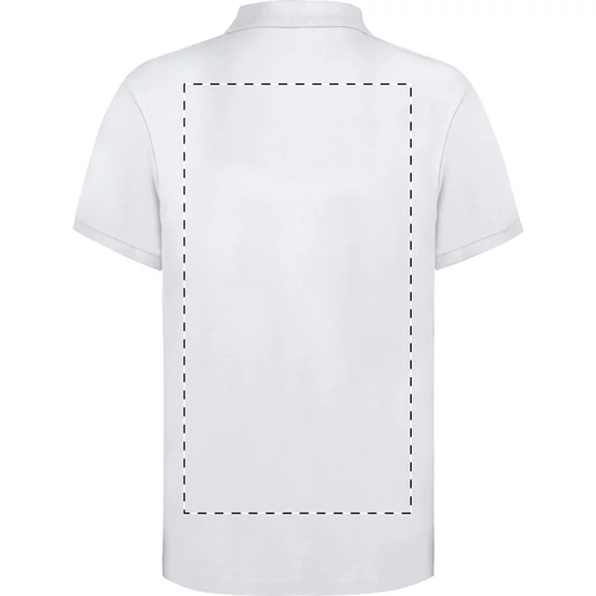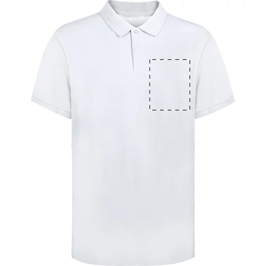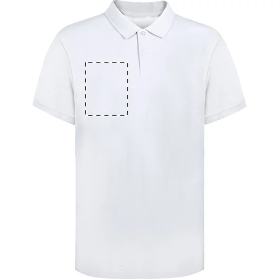 | Fehér piké galléros póló két, színben megegyező gombbal. 100% ringspun pamut, 220 g/m². | |