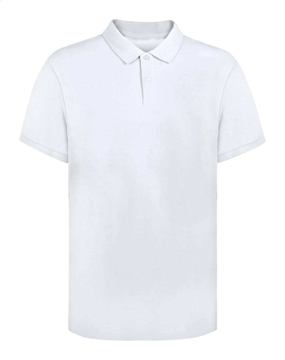 Fehér piké galléros póló két, színben megegyező gombbal. 100% ringspun pamut, 220 g/m².