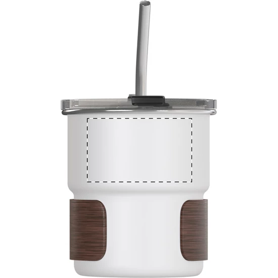 | Egyfalú, újrahasznosított rozsdamentes acél utazópohár diófa markolattal, műanyag ivófedéllel és újrahasznosított rozsdamentes acél szívószállal. 260 ml. | |