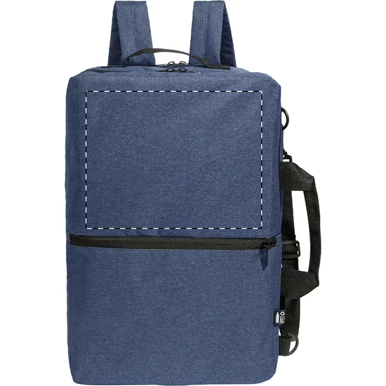 | Kétfunkciós RPET dokumentum hátizsák cipzáras rekesszel, 2 cipzáras elülső zsebbel és párnázott laptop rekesszel (15"). Párnázott hátrésszel és vállpántokkal. Tartalmaz egy további levehető vállpántot, amely irattáskaként is használható. 600D RPET poliészter, megkülönböztető RPET címkével. | |