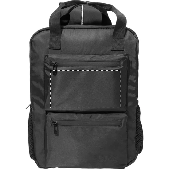 | RPET hátizsák cipzáras rekesszel, 2 cipzáras elülső zsebbel, párnázott laptop rekesszel (15") és hálós oldalsó zsebekkel. Párnázott hát- és vállpántokkal, lopásgátló zsebbel és bőrönd pánttal. RPET twill poliészter, megkülönböztető RPET címkével. | |