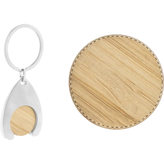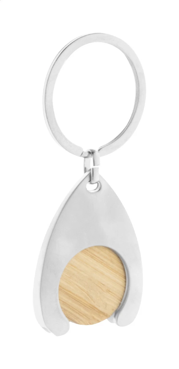 | Fém kulcstartó bambusz bevásárlókocsi érmével és fém karikával. Az érme mérete: ø23×2 mm. | |