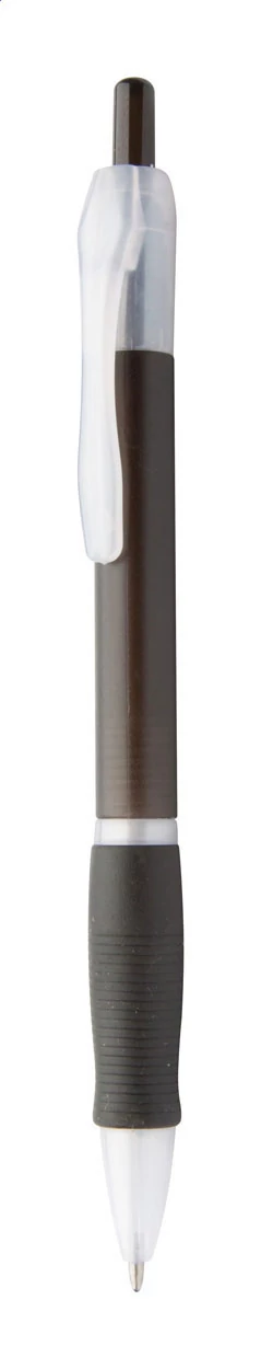 | Műanyag golyóstoll gumírozott markolattal, áttetsző fehér klipsszel és tollheggyel. Kék tollbetéttel szállítjuk. | |